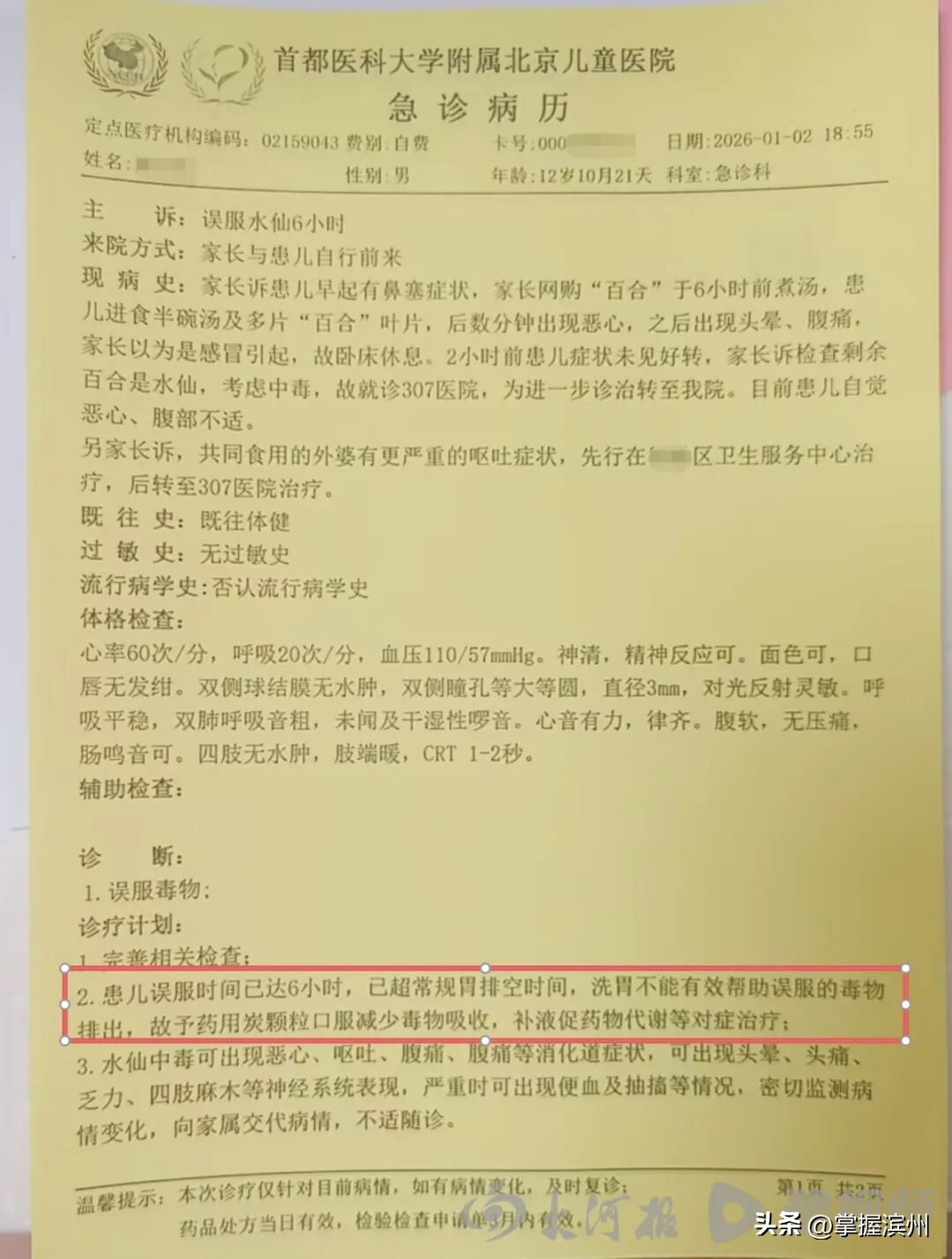 误食经过:水仙当百合,救治延误6小时